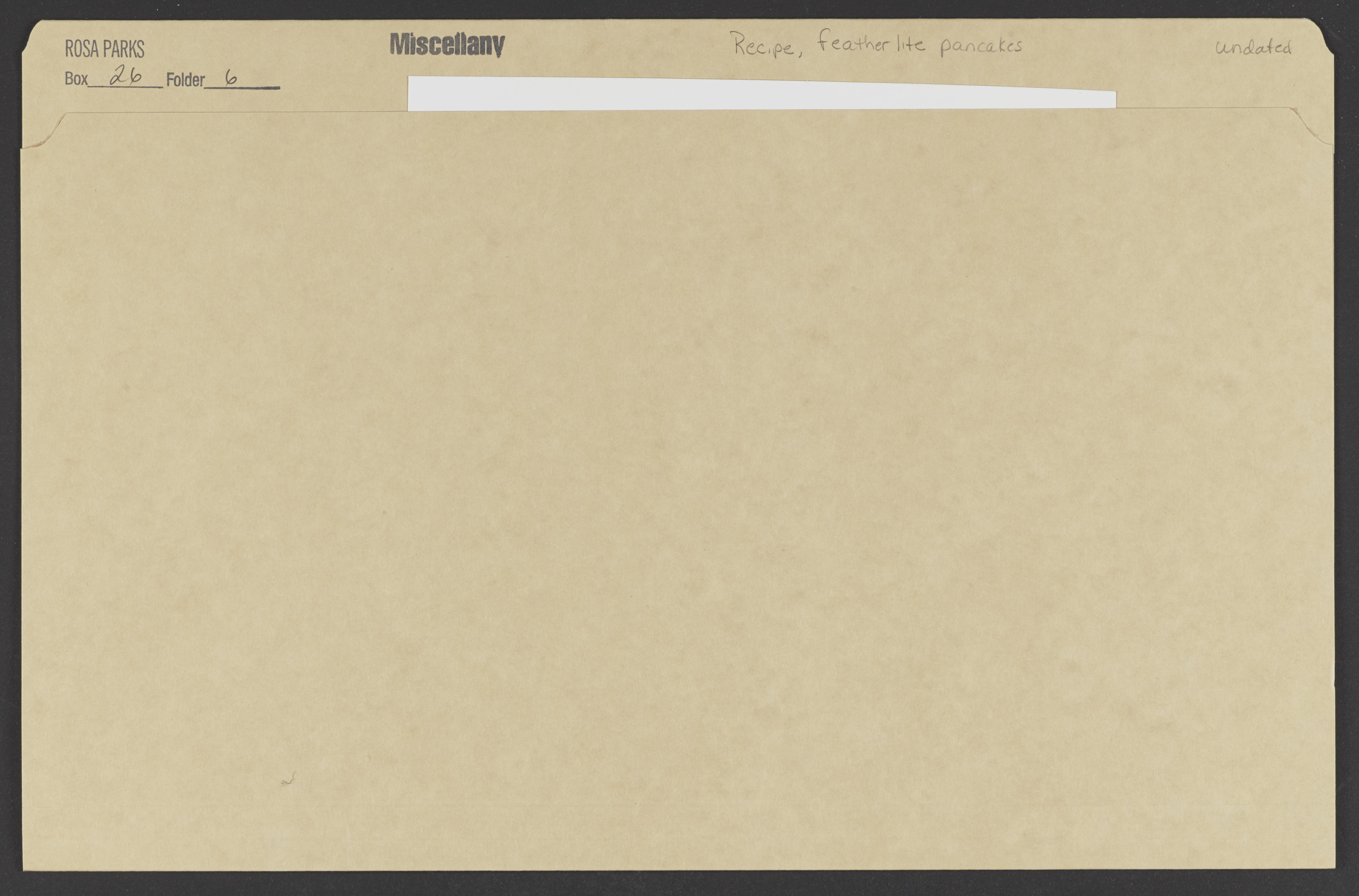 Image 1 of Rosa Parks Papers: Miscellany, 1934-2005; Recipe for featherlite pancakes, undated Item Info